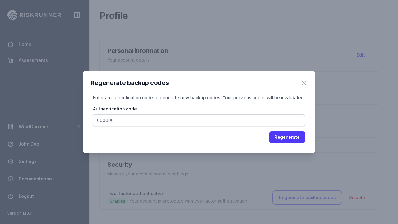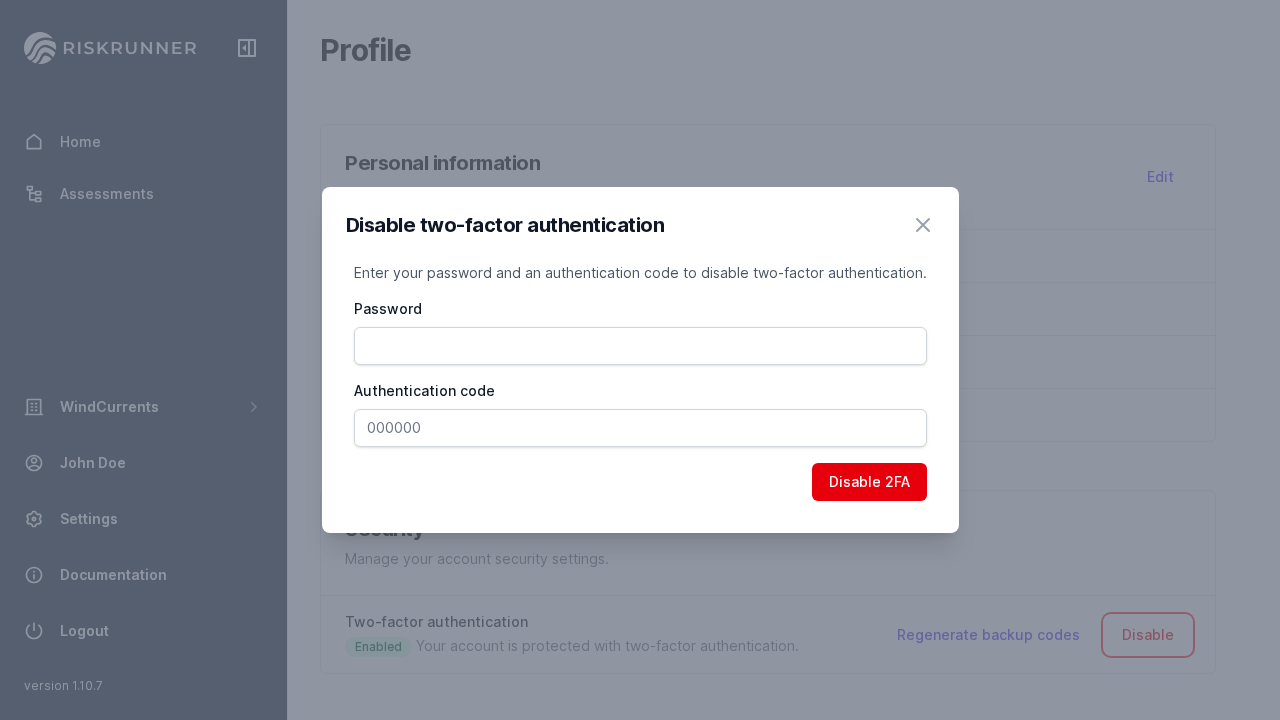 Riskrunner supports time-based one-time password (TOTP) two-factor authentication for password-based accounts.