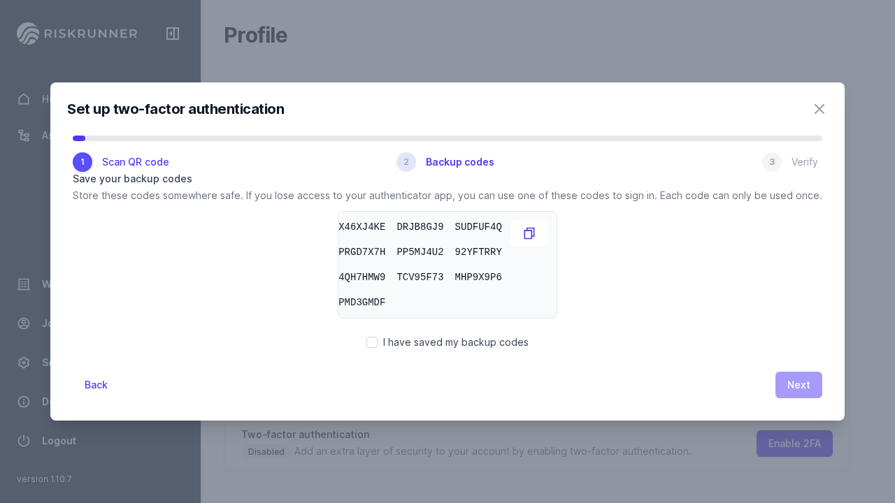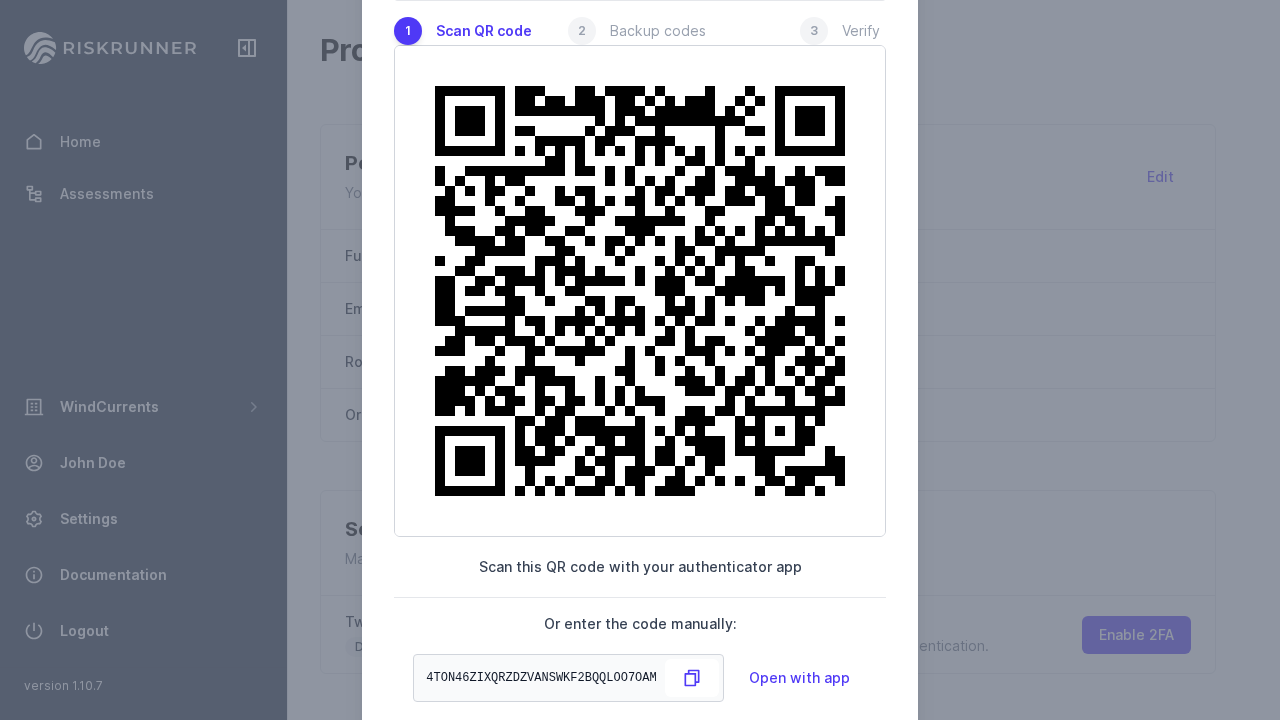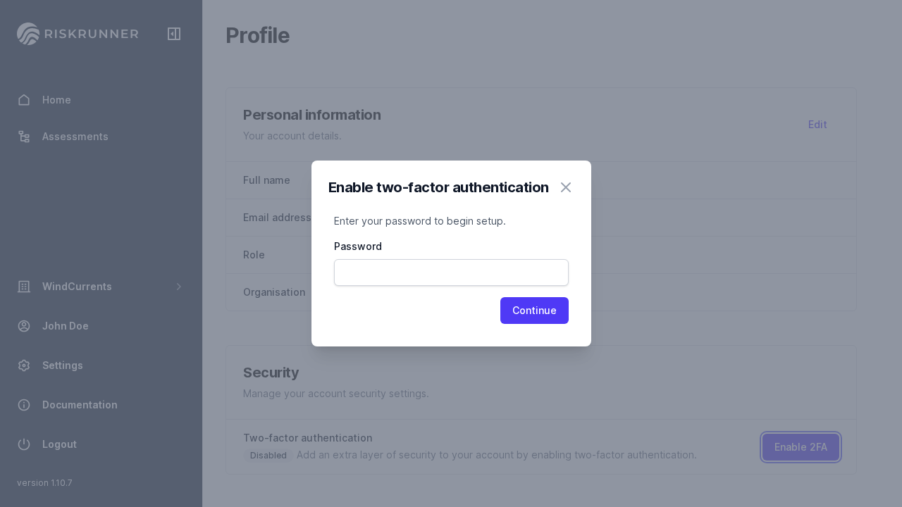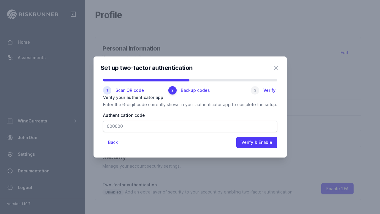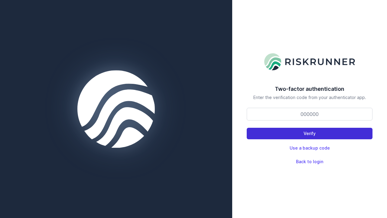 Users who sign in through Single Sign-On (SSO) manage multi-factor authentication through their identity provider. 2FA setup in Riskrunner is not required for those users.